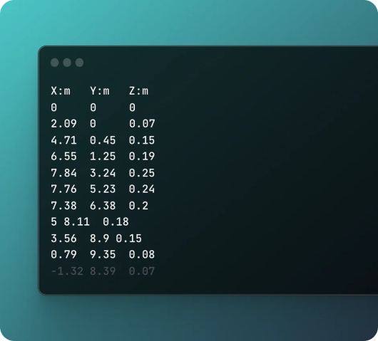 Optimize your workflow by exporting point clouds directly to CSV files. The resulting file captures x, y, and z coordinates, offering a detailed snapshot of your measurement data.