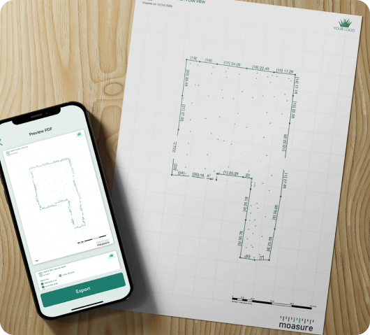 Choose from ‘Scale to Fit’ or select from metric or imperial engineering and architectural scales. PDFs include a full-page grid, a scale bar, and dimensions and labels to bring your measurements to life with clarity and precision. Moasure supports a wide range of paper size options, including A0 to A4, as well as engineering paper sizes such as ANSI C to E.