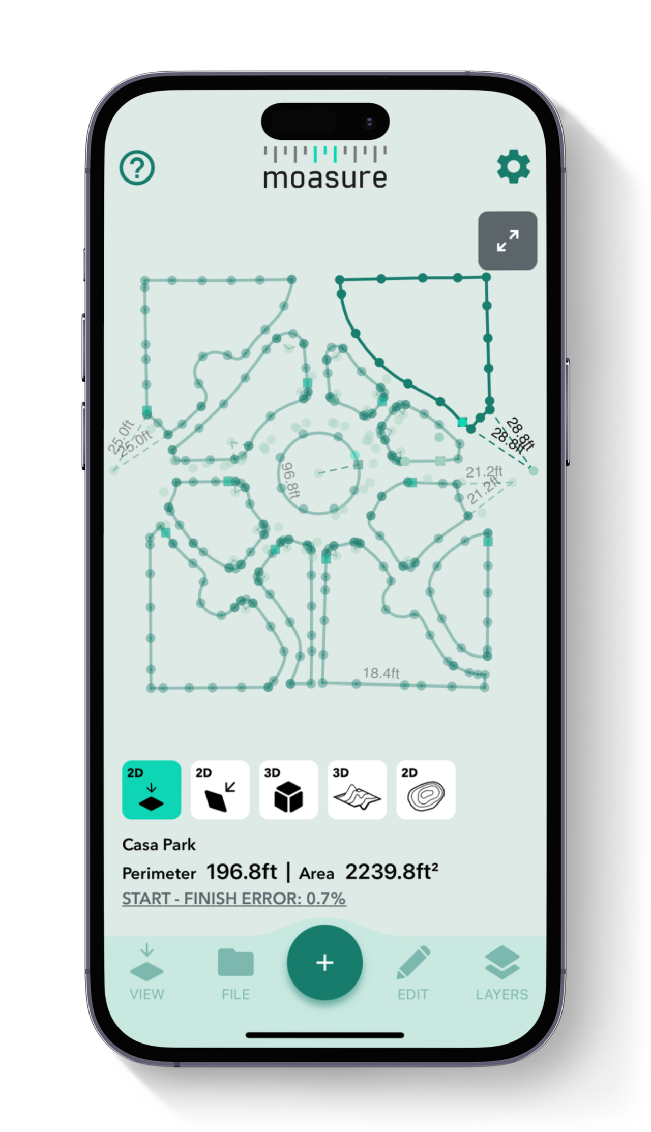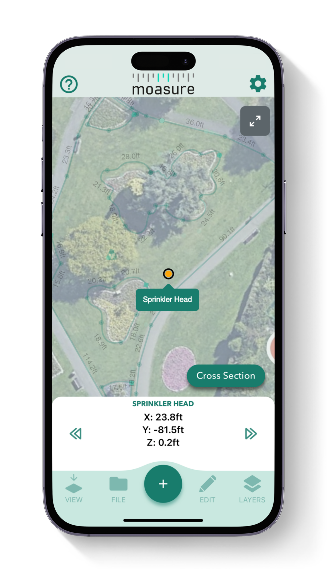 Create dimensioned site plans instantly, simply by measuring as you move. Visualize drawings in both 2D and 3D in the free Moasure app, and label points of interest – like sprinkler heads – for easy reference.