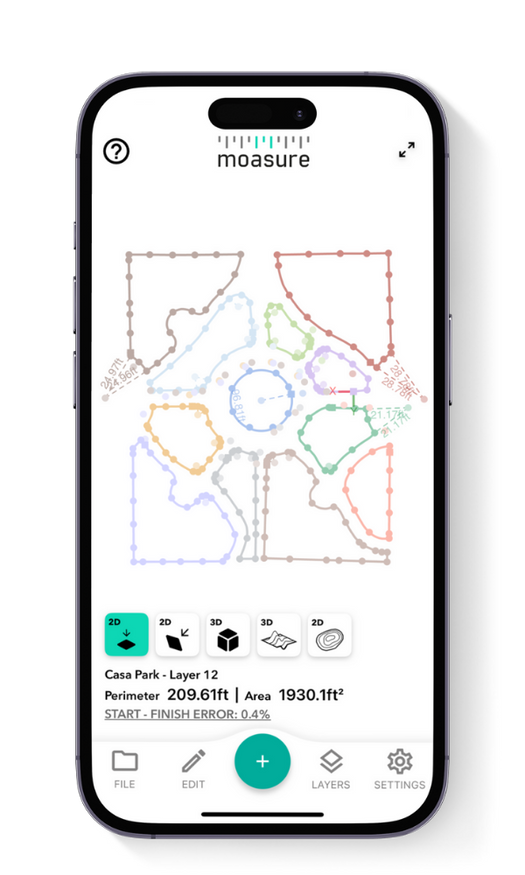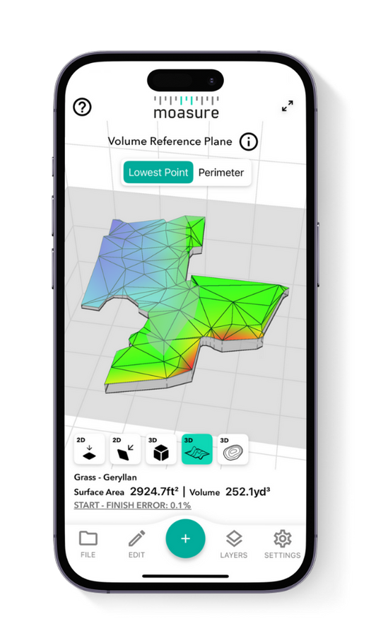 Generate the topography of any measurement with just a few taps on the free Moasure app. Plan drainage or grading effortlessly.