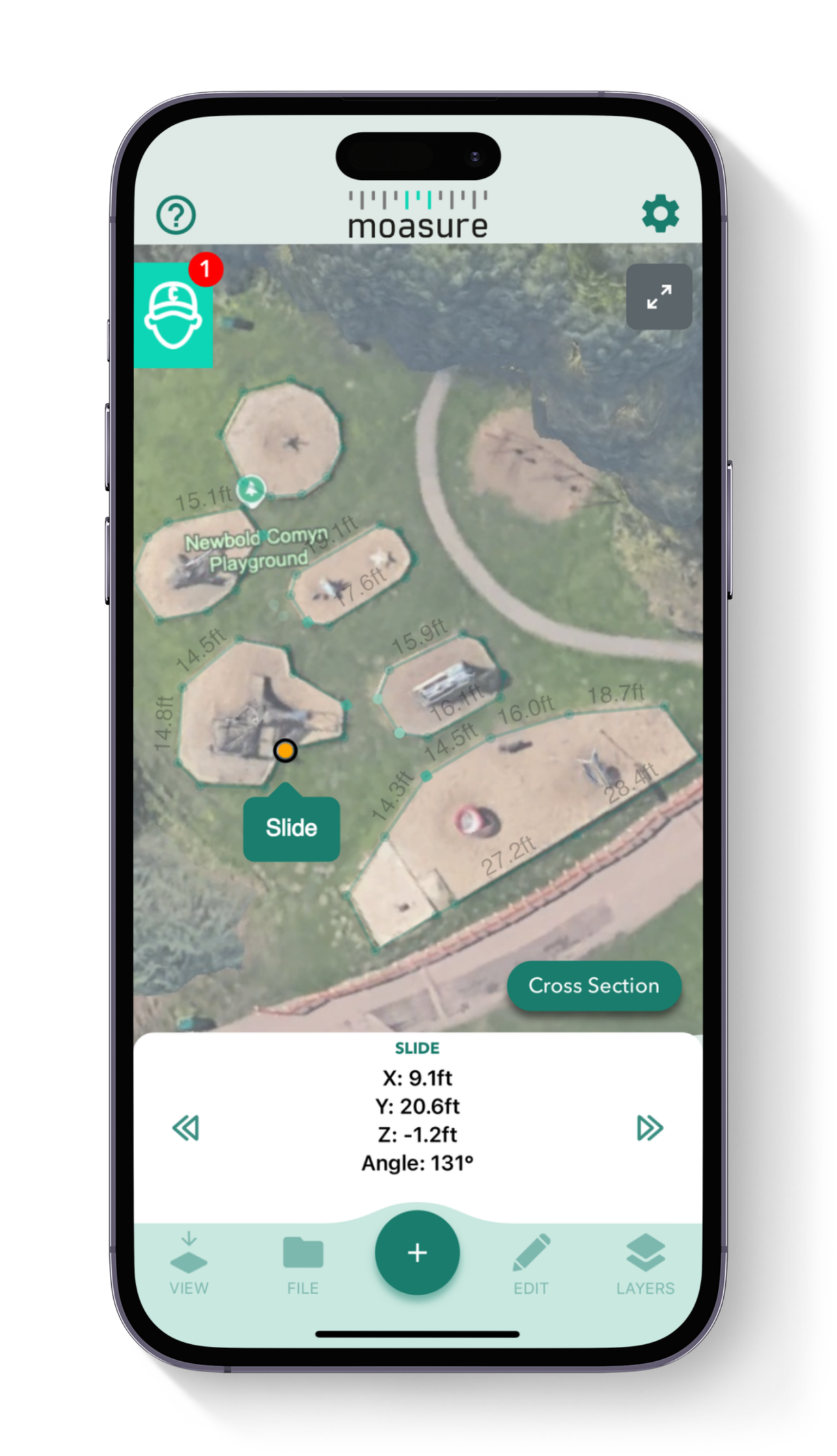 Effortlessly capture elevation points across playground sites, parks, and trail systems to ensure proper grading and drainage. Moasure automatically calculates grade, rise, run, and angles between points – ideal for sloped terrains and ensuring compliance with safety standards.