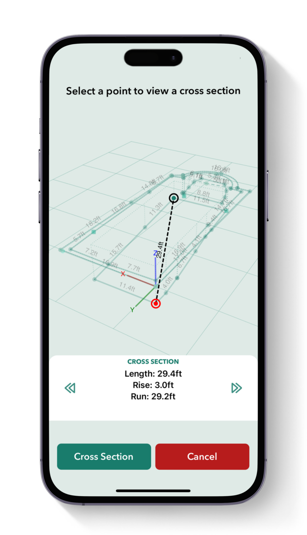 Automatically document elevation changes across your pool site, and quickly determine the grade, rise, run, and angle between any two points – perfect for sloping terrains.